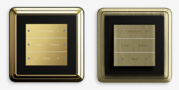 Tekstdragers voor de tastsensoren van het schakelaarprogramma ClassiX. Metalen wippen van brons en messing met gelaserde opschriften.