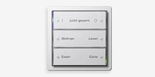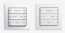 Tekstdragers voor de tastsensoren van de schakelaarprogramma's in Systeem 55: Standaard 55, E2, Event en Esprit. Optioneel: gelakte wippen van metaal met gelaserde opschriften.
